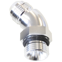 45° ORB To AN Full Flow Adapter. Male to Male full flow ORB to AN adapter. Adapt from an ORB thread to AN flare with a 45 degree bend and full 360 degree swivel. Various sizes available. Available in Blue, Black and Silver.