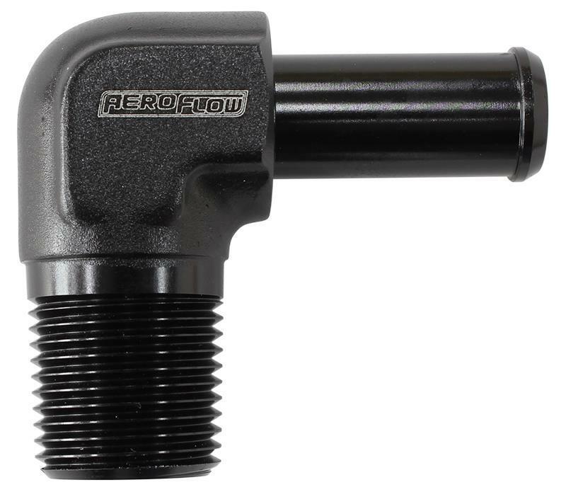 90° Male NPT to Barb. Easily adapt from NPT thread to a simple barb on a 90 degree angle. Barb sizing is to suit 450 & 100 series push on hose. Available in various sizes with Blue, Black and Silver finishes.