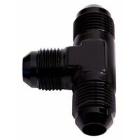 Tee Piece with NPT On Run. These AN male Tee pieces feature an NPT male fitting on the run, allowing two AN lines to be run from one NPT threaded outlet. Various sizes available -3 to -20 and varying NPT sizes. Available in Blue, Black or Silver.